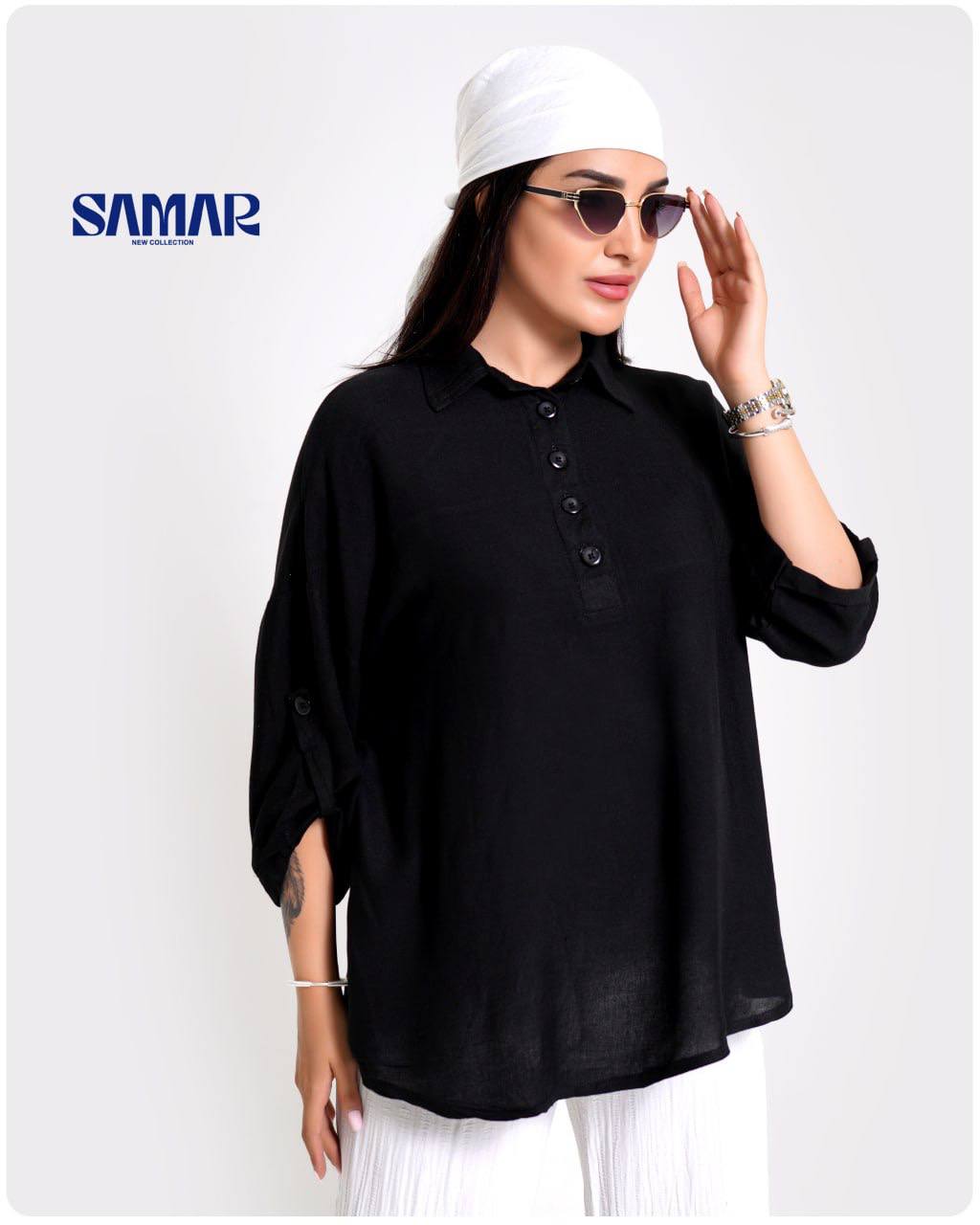 شومیز زنانه جنس لینن وال تک رنگ مشکی