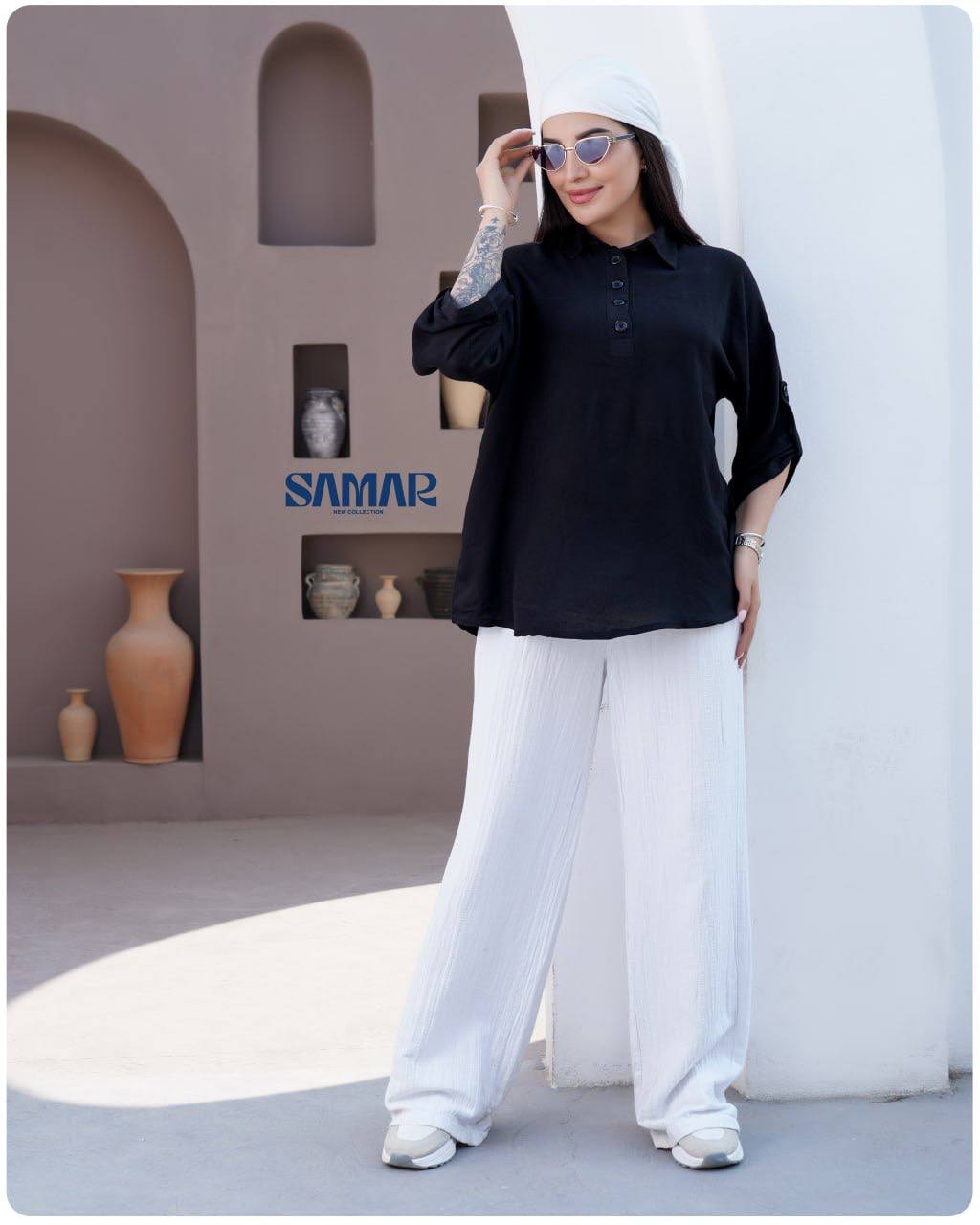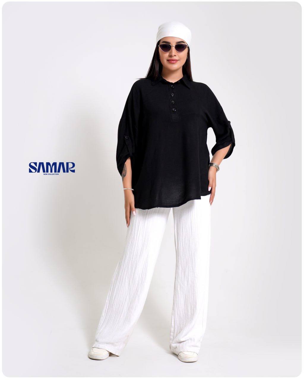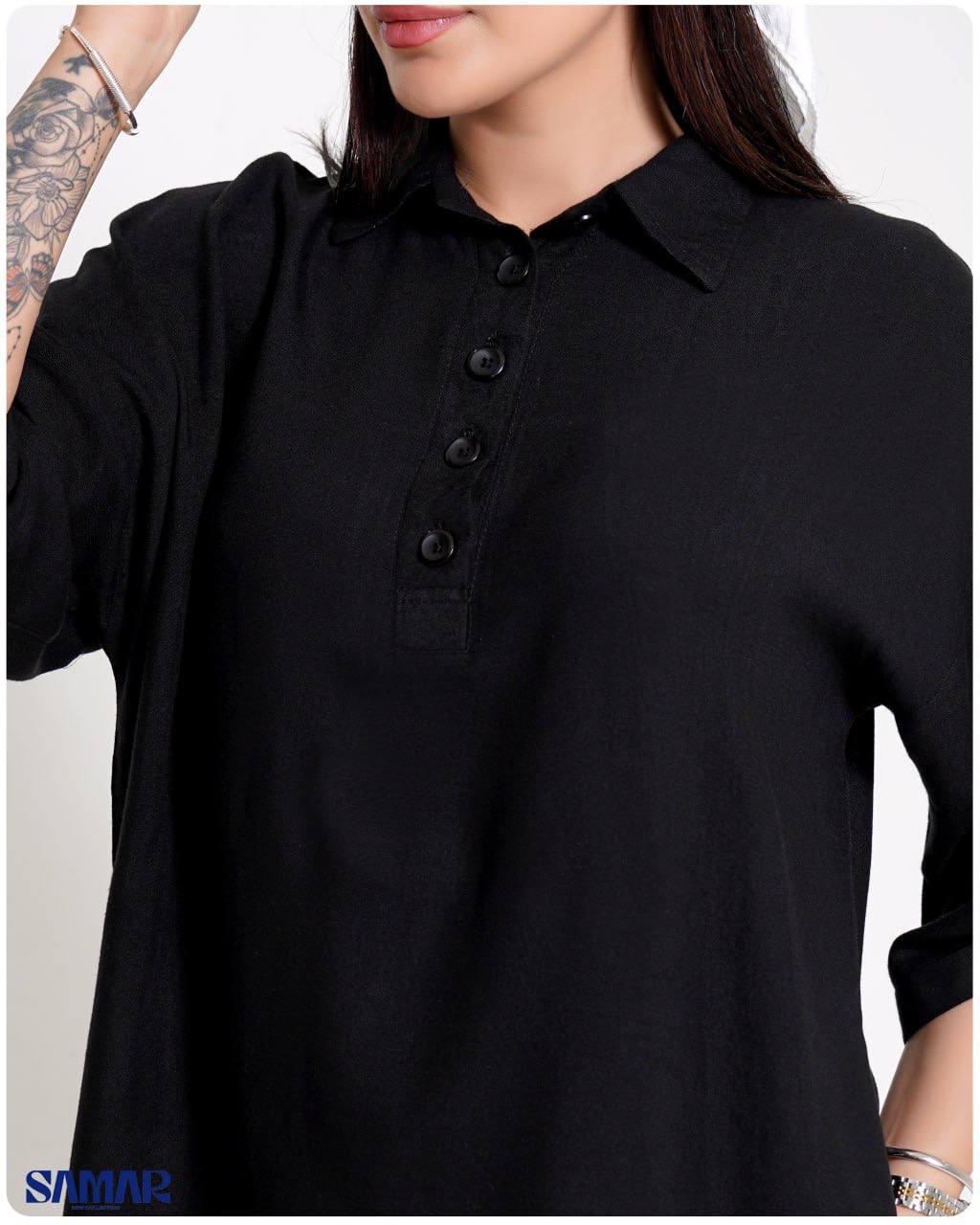 شومیز زنانه جنس لینن وال تک رنگ مشکی