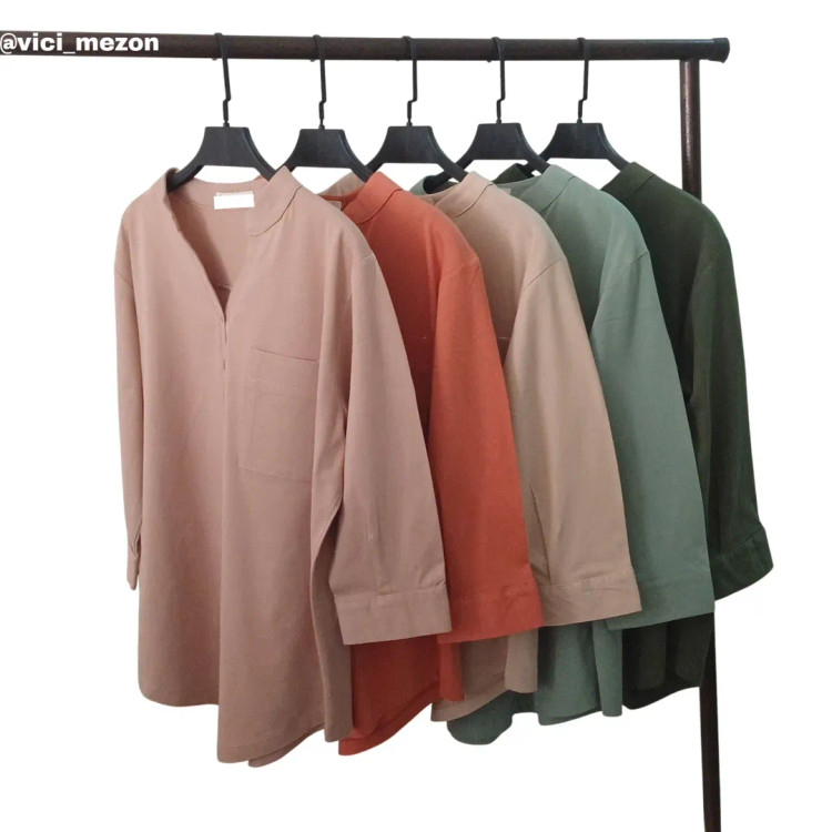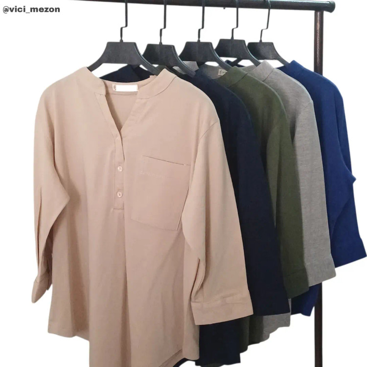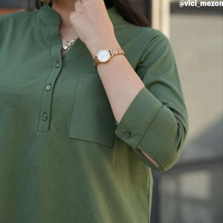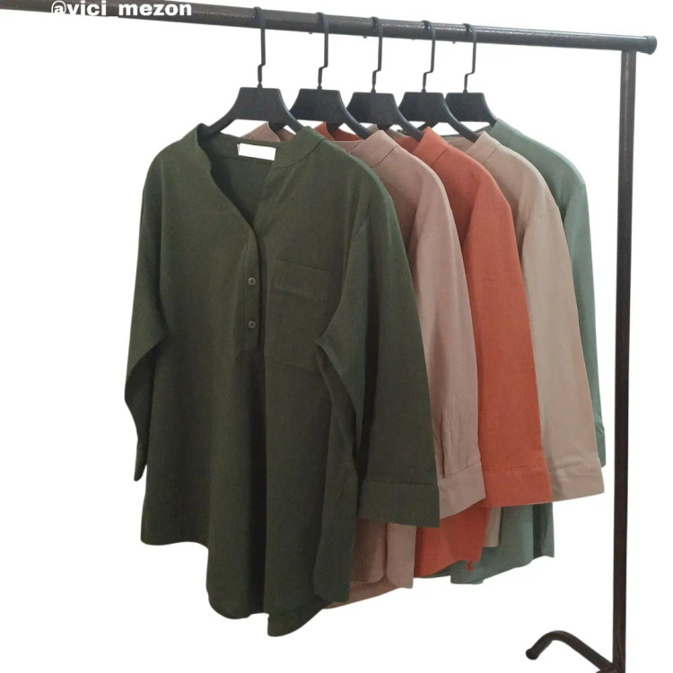 بلوز زنانه آستین سه ربع با یک جیب، مناسب برای سایزهای ۳۸ تا ۴۴ گاها ۴۶ دور سینه: ۱۱۲ سانت و قد لباس: ۷۰سانت.